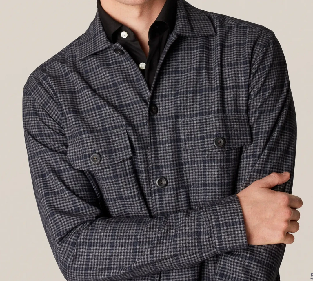 I love the unique blue check pattern of this overshirt. It’s versatile and pairs well with both casual and semi-formal outfits. The quality is top-notch.