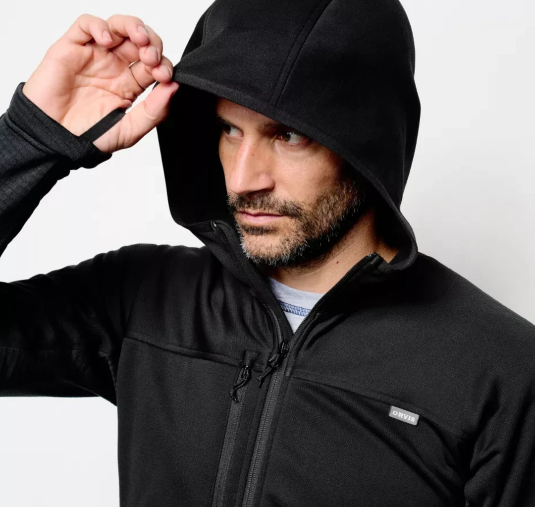 This full-zip style Men’s PRO Fleece Hoody comes from our line of Orvis PRO fishing apparel, the most technologically advanced outerwear we’ve ever built. Using a combination of technical fabrication and action-specific design, Orvis PRO apparel takes on the elements and provides the protection necessary in even the harshest environs. Using the most advanced Polartec fleece fabrics, Orvis PRO Men’s Full-Zip Fleece Hoody uses body mapping to create focused function for optimal movement, moisture wicking, and temperature control. Polartec® PowerStretch® Hardface® coating in body and arms provides superior abrasion resistance without sacrificing stretch. Polartec® Power Grid fleece side panels manage heat and moisture to keep you warm and dry through any activity. YKK® zippered chest pocket and handwarmer pockets. Low profile hood offers superior protection and excellent visibility. Athletic fit is excellent for layering. Polyester/spandex. Washable. Imported.