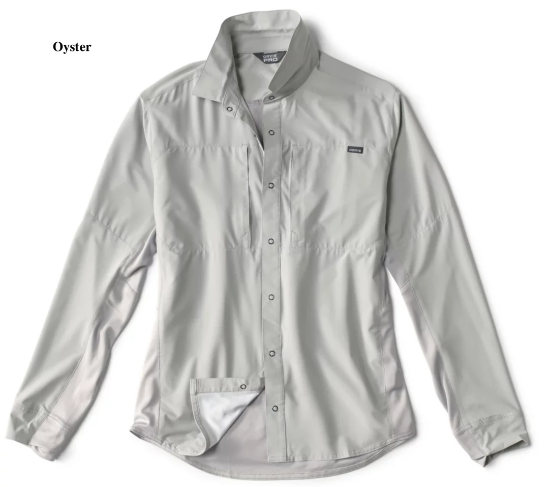 Body-mapped with Polartec® Power Dry® technology in notoriously damp zones like the yoke and underarms, our Men’s PRO Hybrid Shirt offers moisture-wicking, quick-dry UPF 50+. That’s the industry’s absolute highest level of sun protection. We’ve designed the ultralight and breathable fit for zero chafing, even when making repetitive movements like stretching out all-day double-hauls to faraway ZIP codes. Features anti-odor finish for multiple wearings between washings, because laundromats have a way of eating into fishing time and cocktail hour. Integrated thumb holes protect the back-of-hand zone from a scorching sun. Hidden sunglass/cell phone cleaner in lower hem. Two chest pockets, zippered for security. Athletic Fit significantly decreases wind flap.