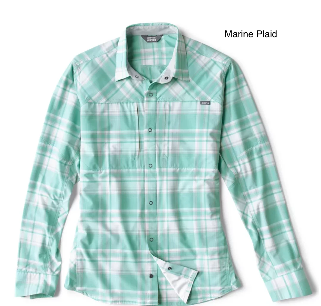At first glance, the industry’s highest UPF rating of 50+ in our Men’s PRO Stretch Shirt might seem like its standout feature. Until you put it on and it becomes apparent: This shirt is so light, it hardly feels like you’re even wearing one. The main body is made from a stretchy, woven fabric that allows for enhanced comfort—even when making aggressive movements like casting for distance, poling, or back rowing the boat above a pod of risers. A collar made from moisture-wicking, breathable Polartec® Power Dry® catches and dries sweat and spray as it runs off your head and neck. Underarm gussets increase your range of motion with zero restriction. The shirt’s anti-odor finish means you’ll get multiple wearings between washings and spend much less time dealing with laundry when you could be fishing. Hidden sunglass/cell phone cleaner in lower hem. Two chest pockets for easy storage. Athletic Fit significantly decreases wind flap.