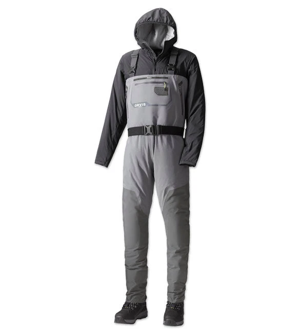 The Orvis PRO Wader is built for the professional angler whether by trade or simply by passion who will go to whatever extreme necessary to find fish. Built with an athletic fit, the PRO Wader uses an extremely durable proprietary 4-layer Cordura® fabric shell in the upper and 5-layer Cordura fabric shell in the lower legs for the best in class abrasion and puncture resistance. Low profile seam construction and a gusseted crotch enhance movement and seam strength. Modern anatomically correct neoprene booties have less bulk with a true “sock” feel and are more comfortable inside wading boots, while the streamlined PU reinforced mesh gravel guard covers the boot tightly and completely eliminates drag and water collection. Convenience features include an external storage pocket with YKK AquaGuard® water-resistant zipper to keep essentials dry and prevents loss. Rubberized tabs on suspenders and front pocket daisy chain for tool docking, offer multiple locations for essentials and eliminate chance of puncturing waders or losing tools. Fly patch on front pocket for quick changes and drying. Large four-way stretch power mesh interior pocket expands to fit larger items yet stays out of the way when empty. Kangaroo-style fleece-lined handwarmer pockets with YKK AquaGuard water-resistant zippers. Removable OrthoLite® knee pads use the same technology found in our PRO Boot insole for optimal comfort and rebound. Removable accessory pocket allows for quick access to gear and offers the features of a small pack. Adjustable elastic suspenders with opposing buckles for waist-high conversion. Interior hook-and-loop patch accommodates our Orvis waterproof pocket (8G3H sold separately). Wader weighs approximately 48 oz. in (medium regular). 100% nylon shell with polyurethane membrane. 100% nylon tricot liner. Imported.