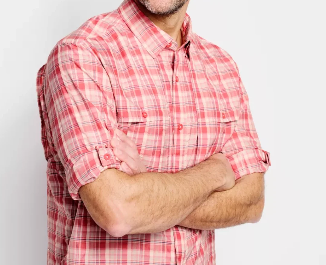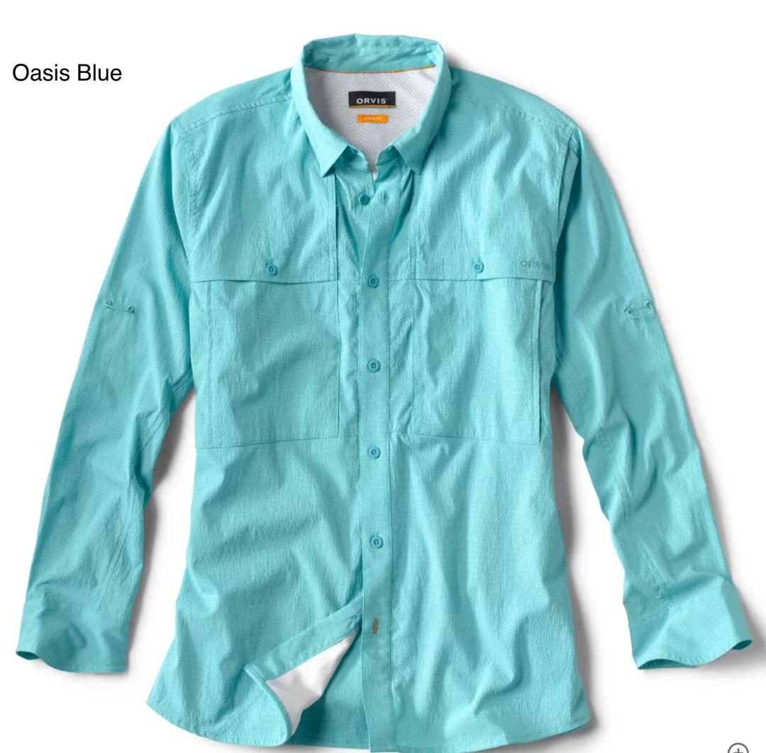 Lighter, softer, and with UPF 40 sun protection, the Long-Sleeved Open Air Caster is an update to our popular fishing shirt, keeping everything you love and now with a new eco-conscious stretch fabric and strategic ventilation. Quick drying and incredibly lightweight, our Open Air Caster features thermoregulating MarinoWul+™ made with recycled plastic bottles and crushed oyster shells for earth-friendly performance, and is treated with OutSmart® Fresh odor control to keep you feeling fresh for more time on the water (and less laundry). New, low-profile ventilation is thoughtfully placed to add extra airflow where it’s needed at the back shoulders, arm holes, and chest. UPF 40 sun protection fends off harmful rays with an extended collar stand and slightly articulated cuffs for extra coverage at the back of the neck and hands. Roll-tab long sleeves convert to short for when the day heats up, and two drop-in front pockets keep small essentials handy with a hidden bungee sunglasses/tool keeper in the right pocket. A zippered chest pocket adds secure storage. Finished with a concealed button-down collar that lays flat in the wind, button-adjustable cuffs, and a hidden sunglasses cleaner in the hem. Active Fit.
